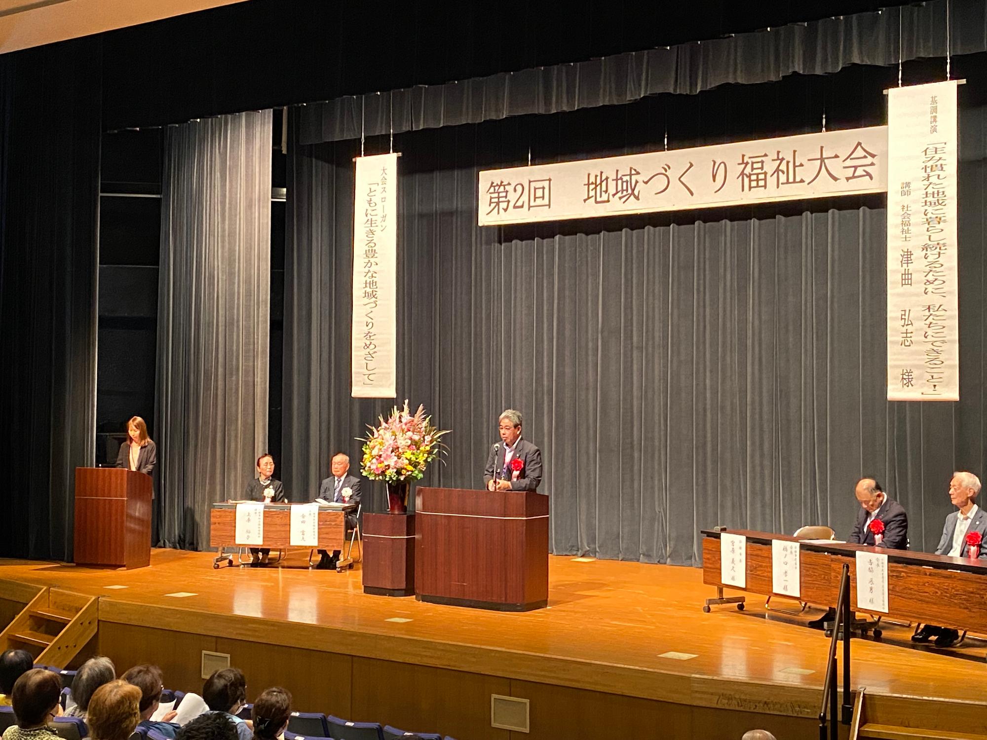 地域づくり福祉大会に出席しました。同大会は、地域共生社会の実現に向けて地域福祉を更に推進していくことを目的に、社会福祉協議会が主催し開催。大会の開催にあたり「大会を通して全ての人々が地域、暮らし、生きがいを共につくり高め合うことができる地域共生社会の実現に向けて福祉に関心をもち考えるきっかけになることを期待します」とあいさつしました。