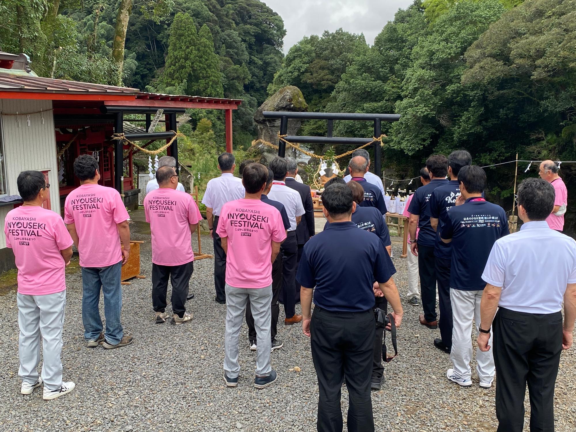 陰陽石まつりに出席しました。神事では、五穀豊穣と地域の発展を祈願。魚のつかみ取り大会やステージイベント、物産の販売などが催され、多くの人でにぎわっていました。